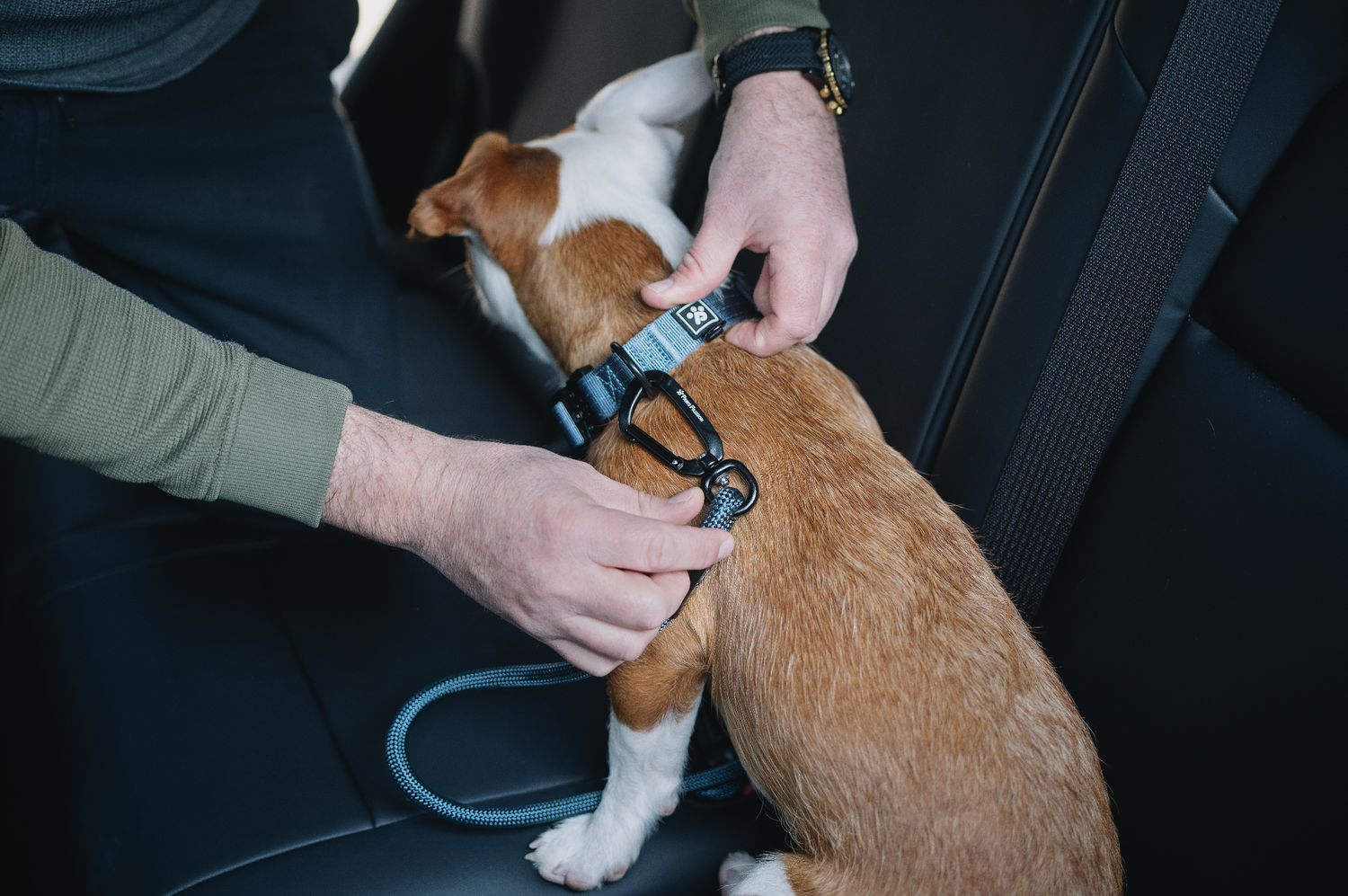 For safer car rides, the Trailmaster Leash features a Safety Belt Buckle Design. We've carefully positioned it for your dog's comfort, ensuring they stay safely restrained without strain, whether on the road or heading to the trails.